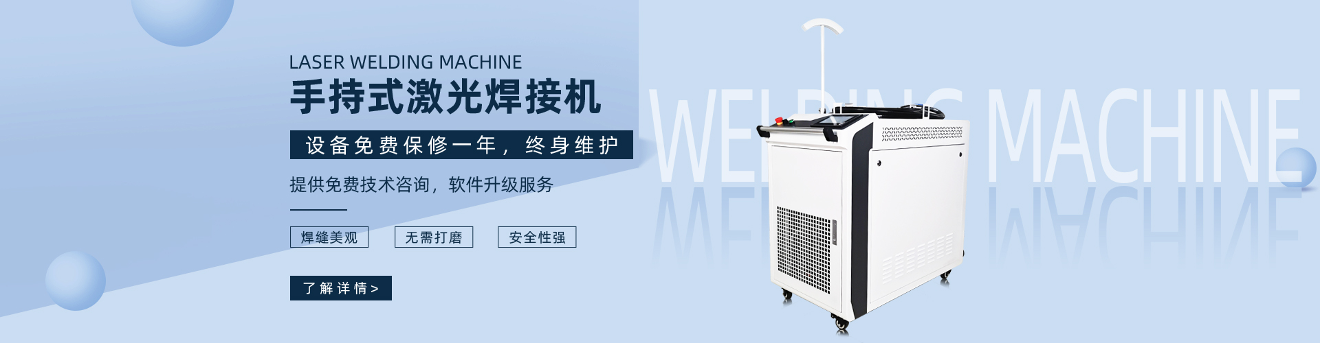 激光焊接機操作簡單,不需要專業(yè)技術(shù)人員,普通員工在幾分鐘內(nèi)即可達到專業(yè)大師的焊接水平,激光焊接機移動式操作方便,是一種新型的焊接工藝,可實現(xiàn)鋁、鐵、銅、不銹鋼等金屬材料的點焊、對接...